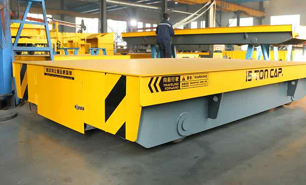 無(wú)軌電動(dòng)地平車采用高強(qiáng)度鋼材(如槽鋼焊接而成的箱形結(jié)構(gòu))或鋼構(gòu)架,確保承重時(shí)的穩(wěn)定性和耐用性,該車車輪采用聚氨酯輪,可以減少摩擦,并且載重能力強(qiáng)。工作的地方是水泥地或環(huán)氧地坪等硬化地面平整度高,平車行駛平穩(wěn)。
