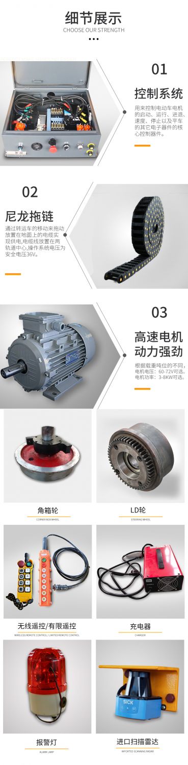 電動平車一般配備多種安全保護裝置,如緊急制動、超載保護等,保障操作人員和貨物的安全。